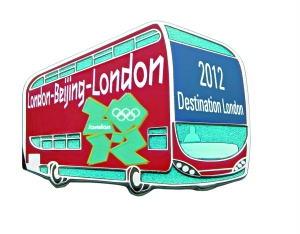 ▲北京奥运会闭幕式上出现过的伦敦大巴形象制作成了徽章。